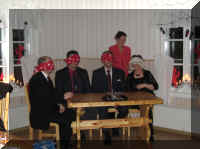 Presidentti Raimo Kröger ottaa vastaan uuden jäsenen Matti Ahosen vakuutuksen. Vasemmalla lady